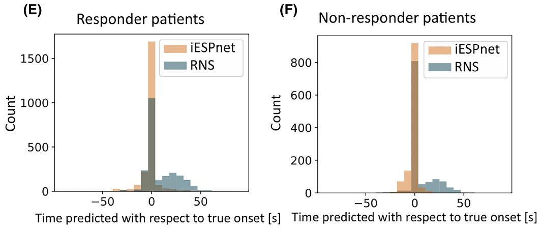 In parallel with expanding clinical indications, we have made foundational contributions to understanding the mechanisms and optimizing the technology of closed-loop brain stimulation. In a landmark study, we discovered that the therapeutic mechanism of RNS is not primarily acute seizure termination (which accounted for only approximately 5% of stimulated seizures), but rather progressive, indirect modulation of seizure network properties, including spontaneous ictal inhibition, frequency modulation, and network fragmentation, that emerged over weeks to months and predicted clinical response (Kokkinos et al., JAMA Neurology, 2019). To manage and analyze the vast quantities of intracranial EEG data generated by the RNS device, we developed BRAINStim (Biophysically Rational Analysis of Individual Neural Stimulation), a custom software platform that extracts, organizes, and enables spectral analysis of chronic electrocorticographic recordings (Sisterson et al., Neuroinformatics, 2020). We further quantified a specific frequency modulation response biomarker, an indirect electrophysiological effect of stimulation characterized by emergent shifts in the spectral content of seizure patterns, and demonstrated its potential for automated detection and use in optimizing stimulation parameters (Venkatesh et al., Journal of Neural Engineering, 2021). Building on these analytic foundations, we developed deep learning systems for expert-level automated detection of intracranial EEG seizure patterns in RNS recordings (Constantino et al., Frontiers in Neurology, 2021), subsequently extending this work to create iESPnet, a neural network capable of both detecting the presence and predicting the onset time of electrographic seizure patterns across patients with diverse seizure presentations (Peterson et al., Epilepsia, 2023).
